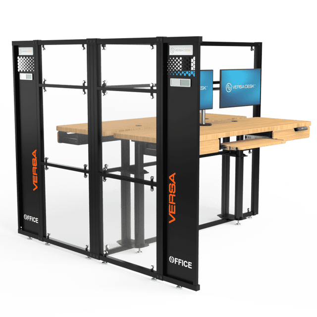 Crafted with fixed-tempered glass panels, these cubicles offer the pinnacle of design flexibility with six unique configurations, empowering you to mold your office layout to fit your vision perfectly. Whether you're looking to outfit complete workstations or seeking individual parts to elevate your current setup, VersaDesk® provides everything you need. Stand out with our exclusive sliding door options, giving you the freedom to personalize your space like never before.